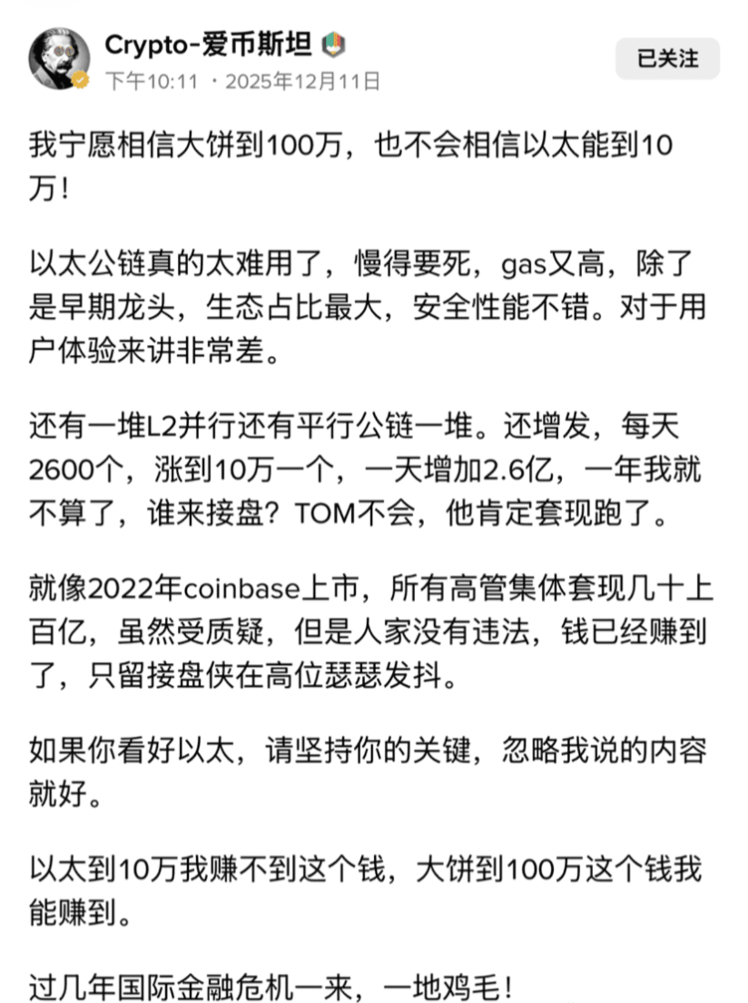 $ETH 12.17号ETH周线线级别盘口 周线下跌隐形成立 3日线级别水下金叉 2日线上涨隐形成立 日线级别水下死叉注意反抽深度 3小时底分型成立 2小时走底金叉 注意1小时级别反抽深度 上方阻力2970 3024 3058 3113 下方支撑2930 2885 2832 2797 ETH多空比:2.57 恐慌指数:16 实盘多空比48:52 全网多空比38:62 不见形态不动手 不带止损不开单 (以上内容仅供参考 不做任何投资建议)