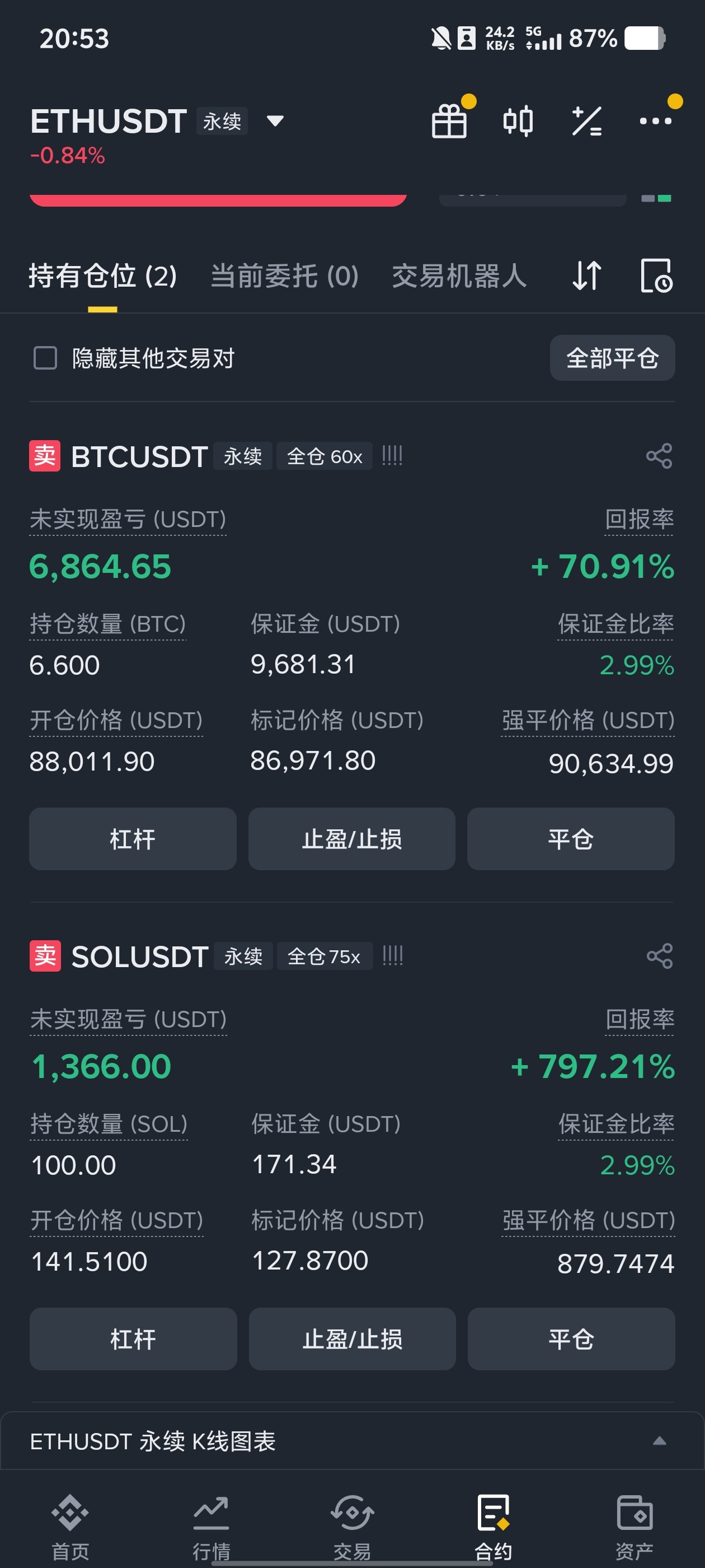 哎~~~小仓位赚的就是慢呀,开两个仓这么久了才赚了8000u! 知不足而奋进!下次开单,要加点仓喽~!
