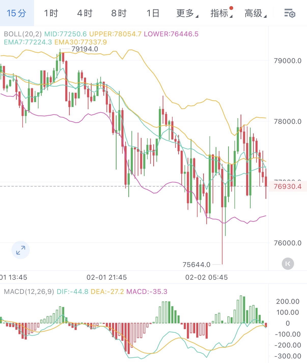 • BTC 🪙:现价约75,900 USD,处于高位回落后的震荡阶段,75,500为今日关键支撑,守住则有望上探76,500压力位,下破则回踩75,000支撑。