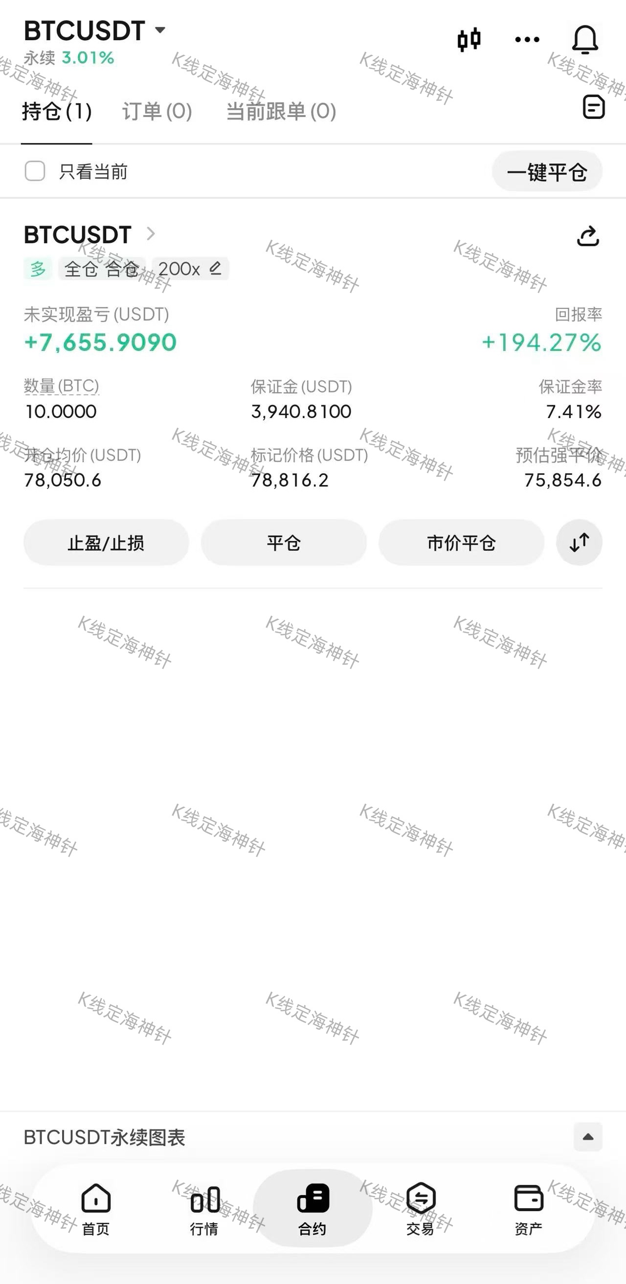 精准抄底,已实现194.27%的回报率,浮盈7655 油,这波操作完美诠释了币圈里勇气与执行力的价值。