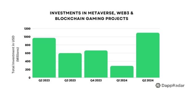 The blockchain gaming sector in 2025 shows signs of revival. IMARC Group forecasts the market to grow from $24.4 billion in 2024 to $1.1728 trillion by 2033, with a 62.59% CAGR. DappRadar reports a 314% surge in blockchain gaming investments in Q4 2024, with AAA titles like Illuvium and Guild of Guardians attracting traditional gamers. Major gaming firms are doubling down: Polygon Labs and Immutable launched a $100 million Web3 gaming fund, and Supercell invested in Web3 startup GFAL (securing a $3.2 million seed round in 2024), reflecting industry confidence. Optimized NFT features (e.g., emphasizing digital ownership and cross-game asset transfers) and the rise of Telegram-based incentive games further boost the mobile market.